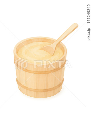 木桶入り味噌と木さじ 水彩イラスト PNG 透過背景