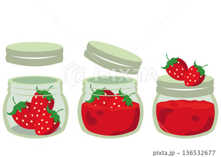ガラス瓶に入ったイチゴジャムのイラストセット