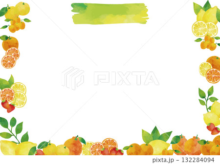 水彩風 冬の柑橘類(イチゴ・ユズ・ミカン・レモン・デコポン・キンカン)フレーム