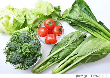 新鮮な野菜 緑黄色野菜 緑の野菜 健康野菜 色とりどりの野菜