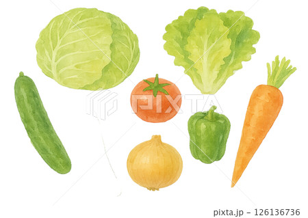 水彩風 新鮮な野菜セットのイラスト