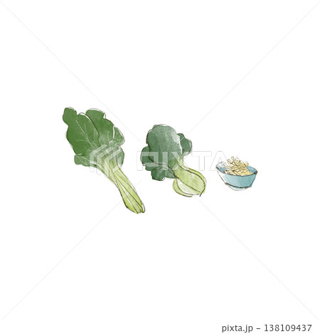 小松菜 フレッシュな野菜の手描き水彩イラスト素材