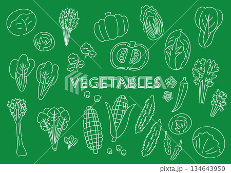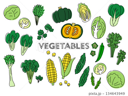 イラスト素材:シンプルな手描き風、野菜のアイコン、ベクターイラスト素材セット