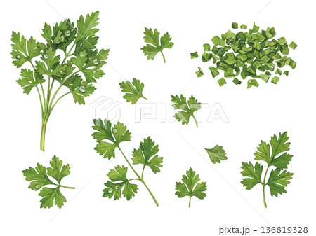 パセリのバリエーションセット 縮れパセリ・イタリアンパセリ・オムレツのイラスト詰め合わせ