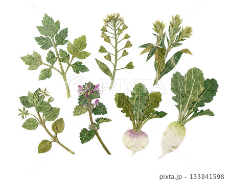 春の七草を集めたイラストセット