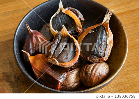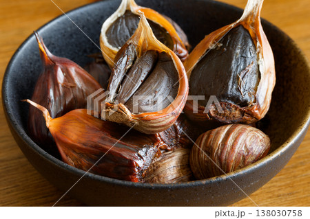 皮付きの黒にんにくと皮を剥いた白にんにく