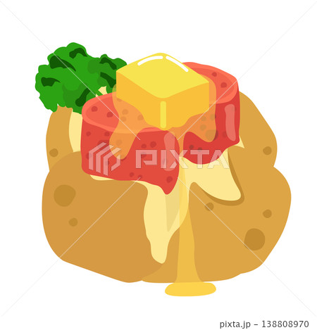ふかしたジャガイモに明太子とバターをのせたイラスト