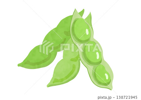 水彩風 茹でた新鮮な枝豆 バラバラ さや付き