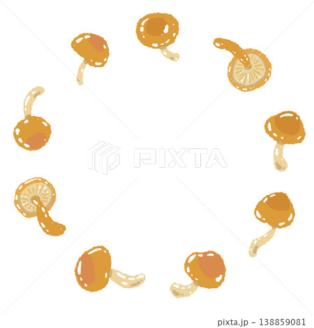 なめこの丸型フレームの手描きイラスト素材