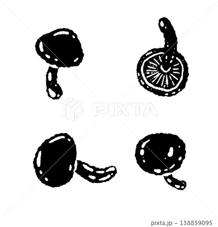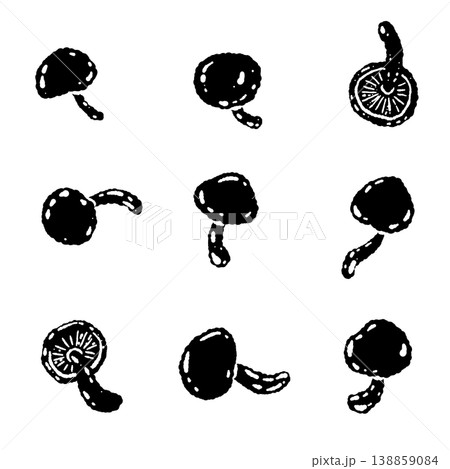 なめこのバリエーションセットのモノクロ手描きイラスト素材