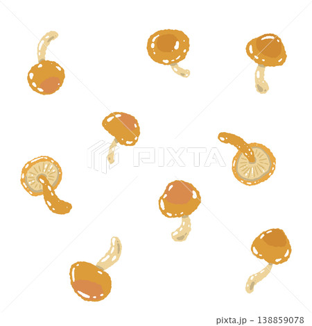 なめこ(ランダム配置)の手描きイラスト素材