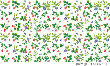 ベージュ背景のワイルドストロベリー柄パターン素材