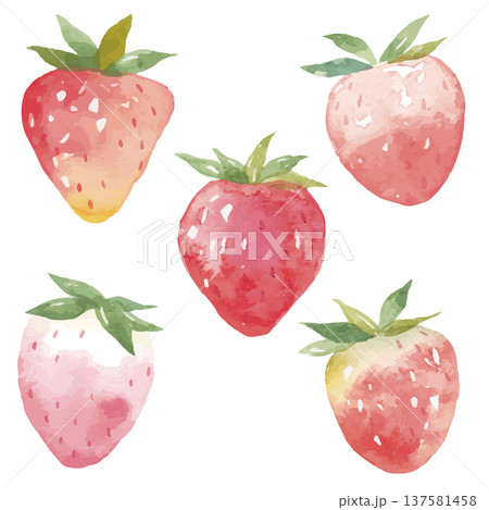 水彩風 手描きイチゴのイラスト素材セット(ベクター版)