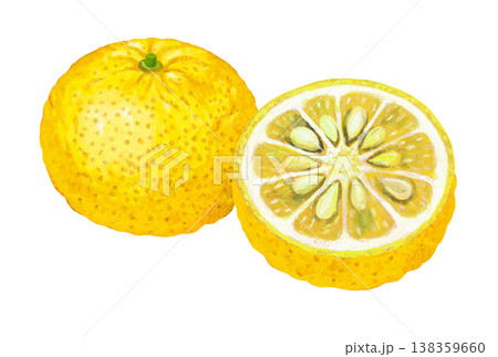 ゆず(単体・丸ごと)の手描きイラスト素材