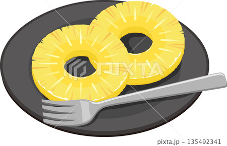 カットしたパイナップルの色鉛筆画ワンポイントイラスト