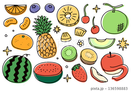 果物のアイコンのセット フルーツのベクターイラスト 手描き風