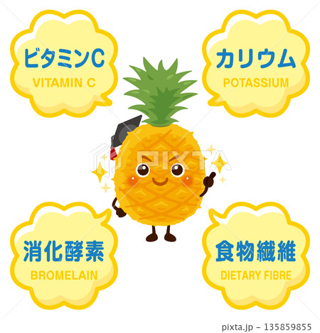 パイナップルのキャラクターとパイナップルに含まれる成分イラスト