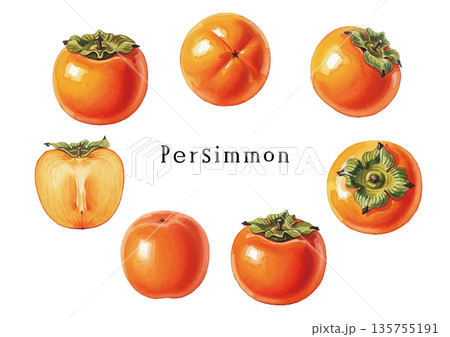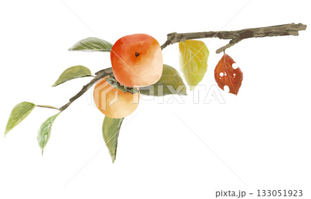 秋 柿 かき カキ 果物 フルール デザート 水彩 イラスト素材セット