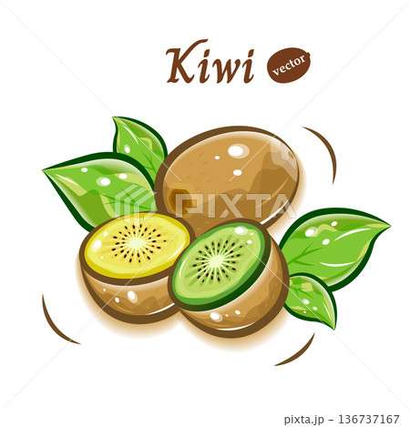 キウイフルーツのイラスト素材(丸ごとと断面)