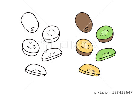 色ありと白黒のグリーンキウイとゴールドキウイのイラストセット