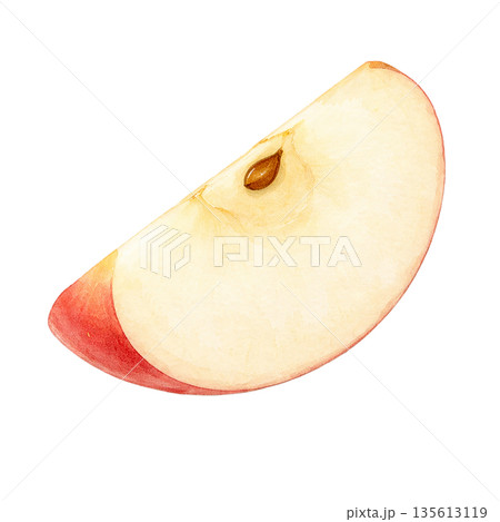 水彩で描いたカットされたりんごのイラスト
