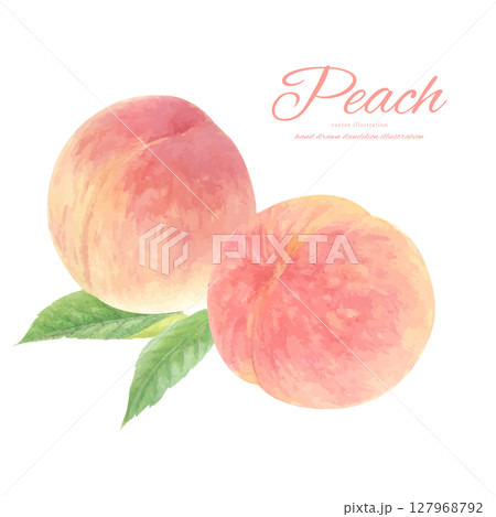 かわいい手描きの水彩タッチの 桃/果物/フルーツ