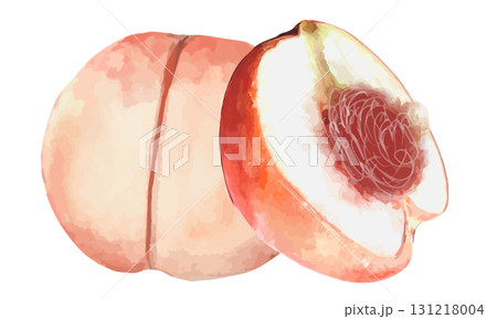 カットされた白桃とそのままの白桃のかわいいイラスト