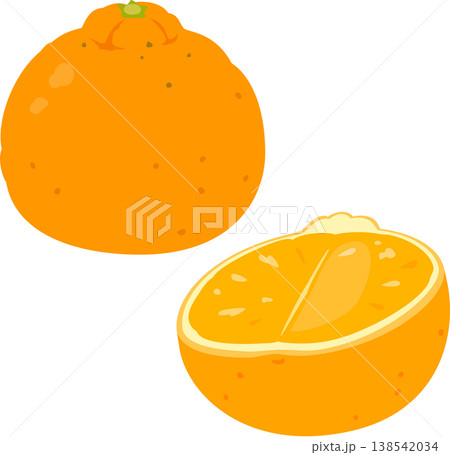 冬が旬!リアルなタッチの柚子2個のイラスト