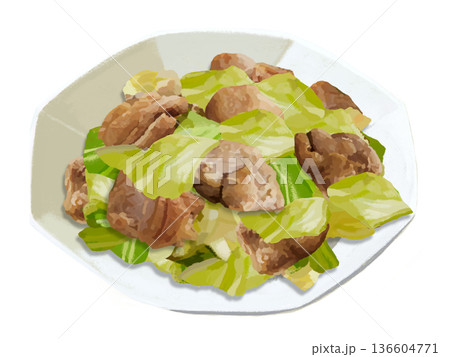 からあげ定食 料理・食べ物の手描き水彩イラスト素材