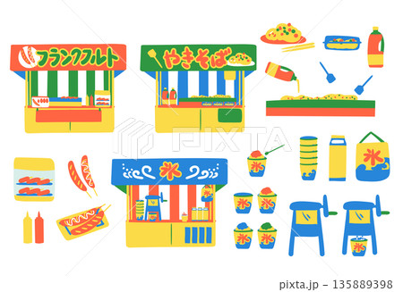 かき氷 フランクフルト やきそばのお祭りの屋台セット.