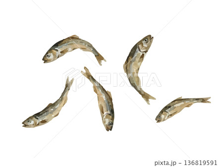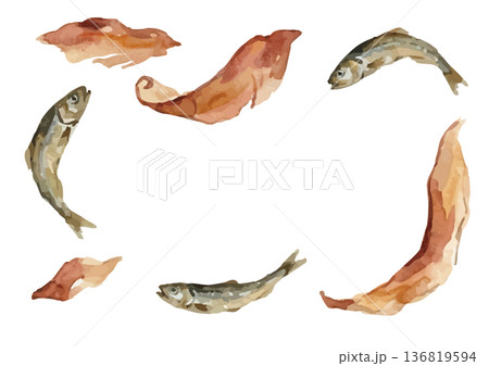 水彩風の出汁(いりこ・昆布・鰹節)イラスト