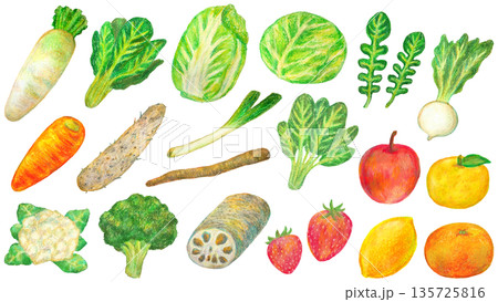 水彩・アンティーク風 冬野菜イラスト9点セット AI