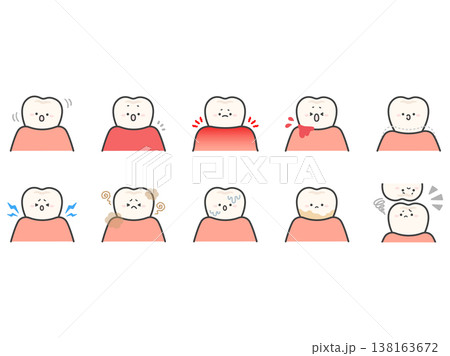 歯周病や歯槽膿漏のイメージ、かわいい歯のイラストセット