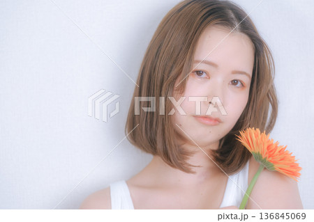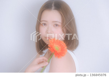 花と女性の透明感ポートレート