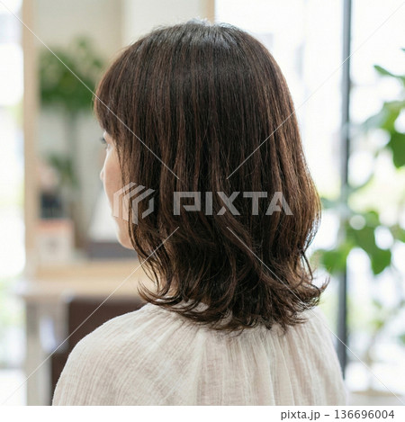 ヘアスタイル写真 セミロング 外はね 後ろ姿