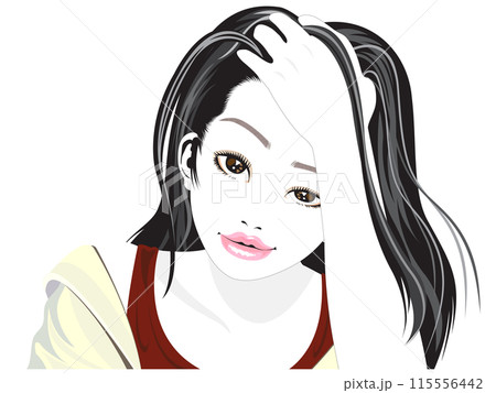 髪をかきあげる女の子 目を閉じた女性の横顔、目を開けた女性の横顔