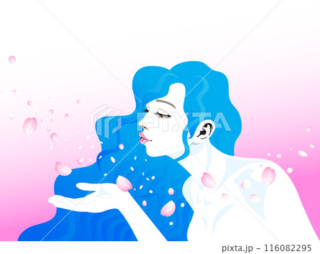 風を感じ前を向く横顔の女性イラスト / ベクターあり