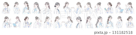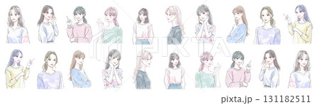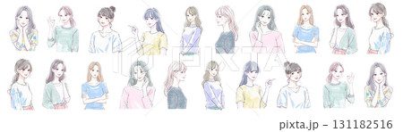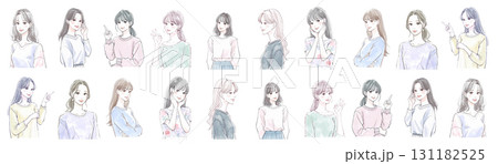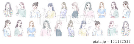 水彩画・手描き風の女性・女の子のイラスト素材セット