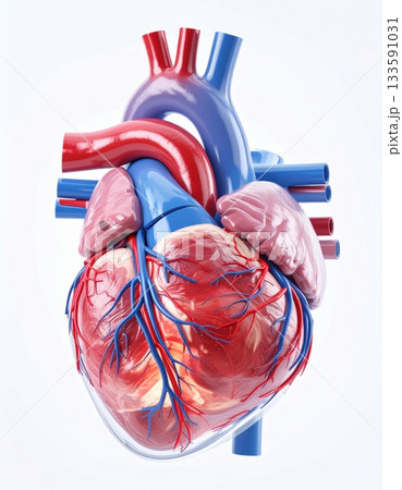 人体の心臓 解剖図 3Dイラスト(動脈・静脈・心筋の精密レンダリング)
