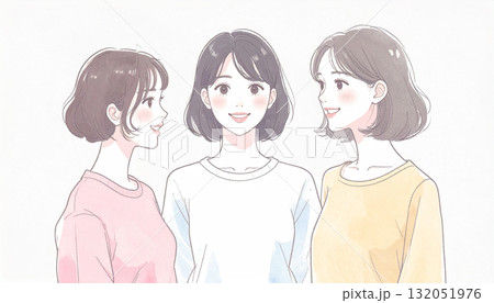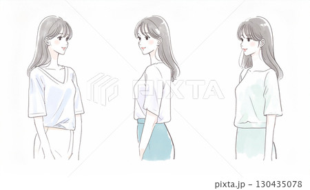 水彩画・手描き風の女性・女の子のイラスト素材セット