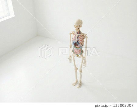 白い部屋に展示されたリアルな内蔵骨格標本