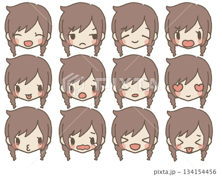 様々な髪型の若い女性の笑顔の顔アイコンセット