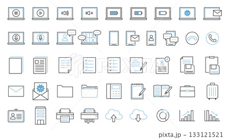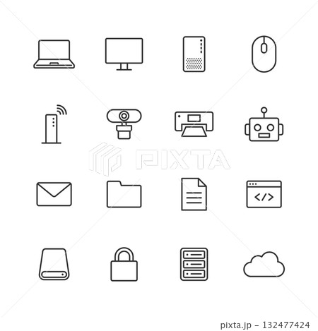 パソコン関連の線画アイコンセット