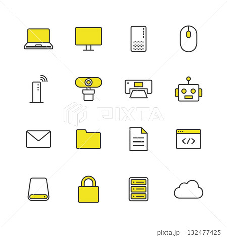 パソコン関連の線画アイコンセット(色あり)