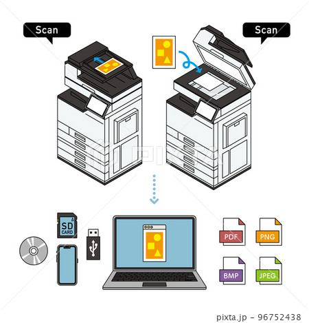プリンター複合機 スキャンイラスト素材