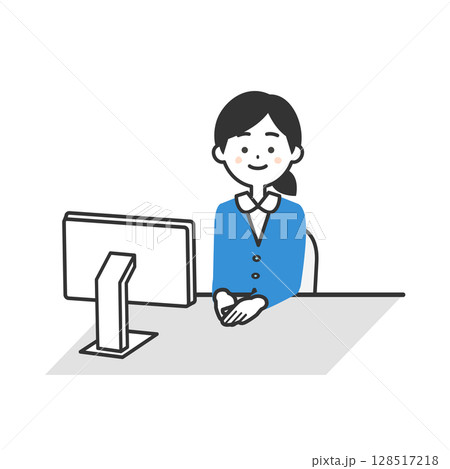 デスクでパソコンを使うスーツ姿の女性イラスト