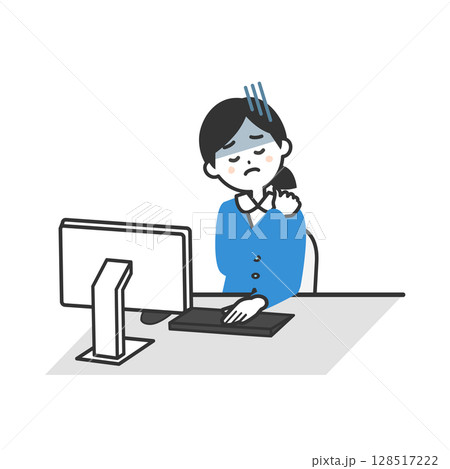 パソコンの前で疲れた様子のスーツ姿の女性イラスト