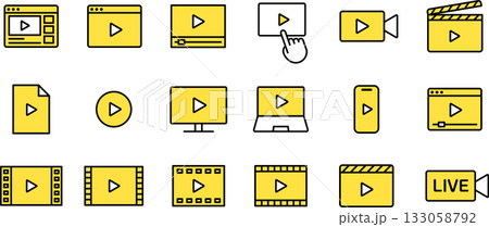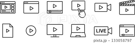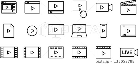 動画・映像・ムービーの編集可能なラインアイコンセット