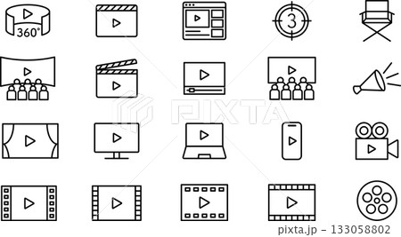 動画・撮影・映画・映像・ムービーの編集可能なラインアイコンセット