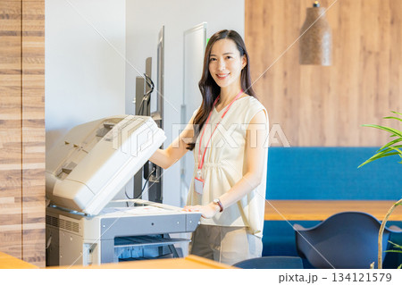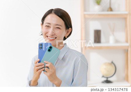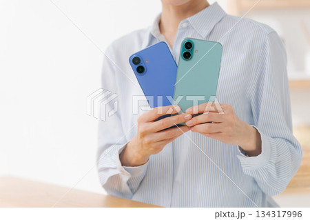 スマホを見るカジュアルのミドル女性ビジネスウーマン